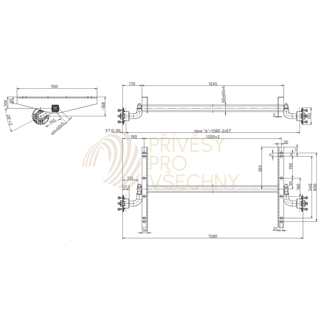 Náprava KNOTT VG 7 (750 kg) b=1200 mm, c=1580 mm, 100x4, patky 100, STEMA