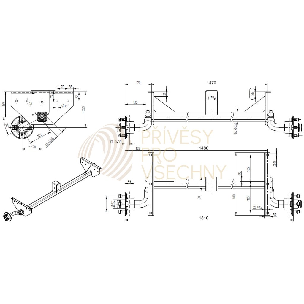 Náprava KNOTT VG 7 (750 kg) b=1480 mm, c=1810 mm, 100x4, patky 159