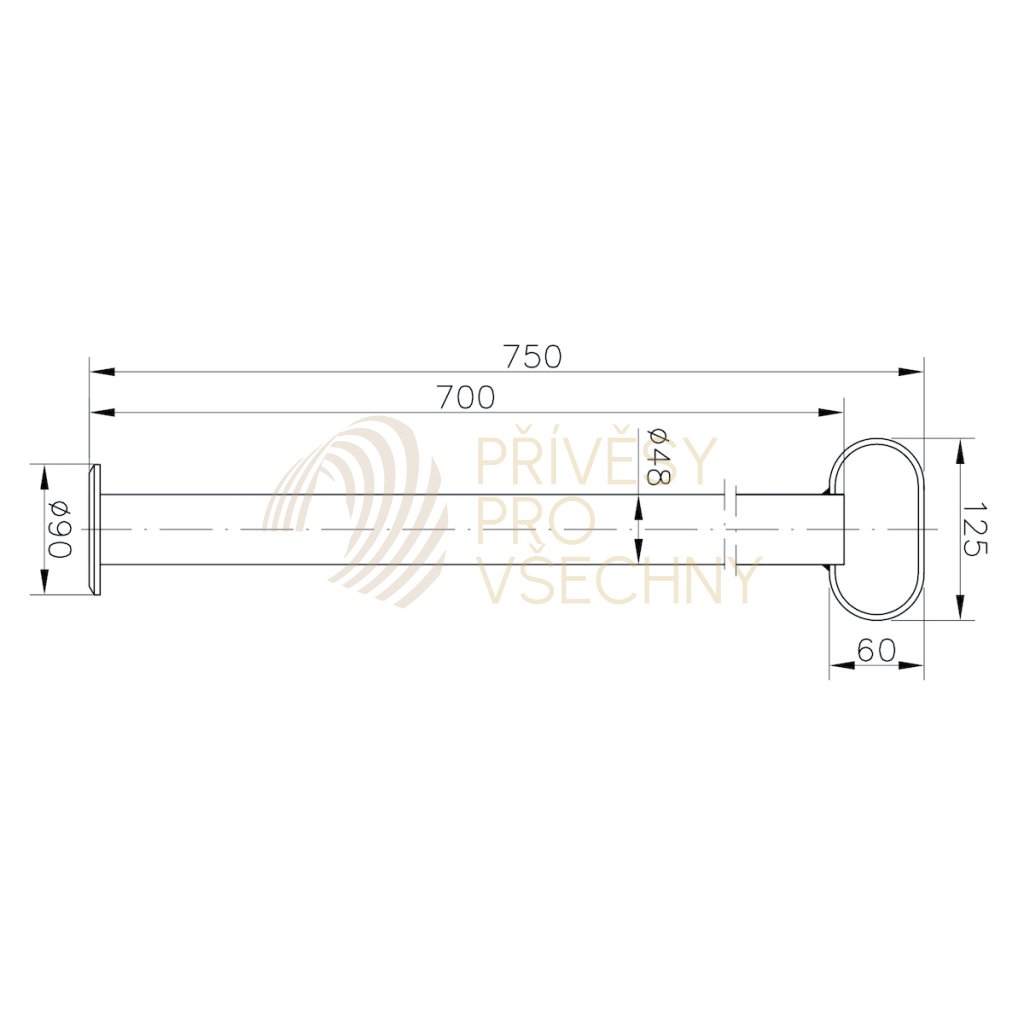 Pevná opěrná noha délky 700 mm určená pro uchycení do držáku pro průměr trubky 48 mm.