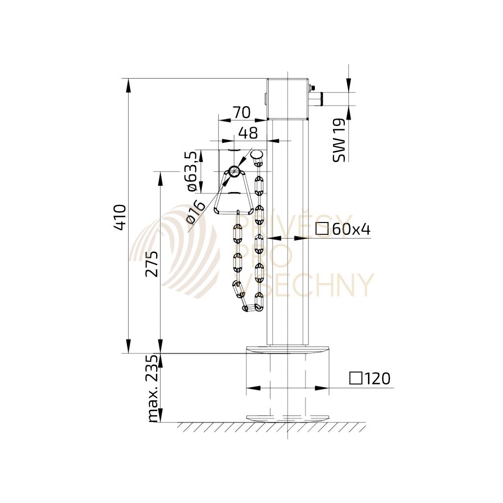 Opěrná noha je opatřena 19 mm šestihranem. Otáčením šestihranu lze vysunout spodní část nohy až o 240 mm.