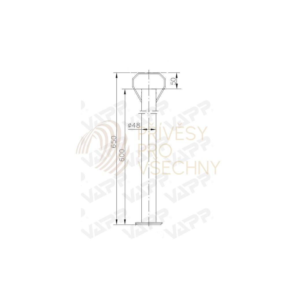 Pevná opěrná noha délky 600 mm určená pro uchycení do držáku pro průměr trubky 48 mm.