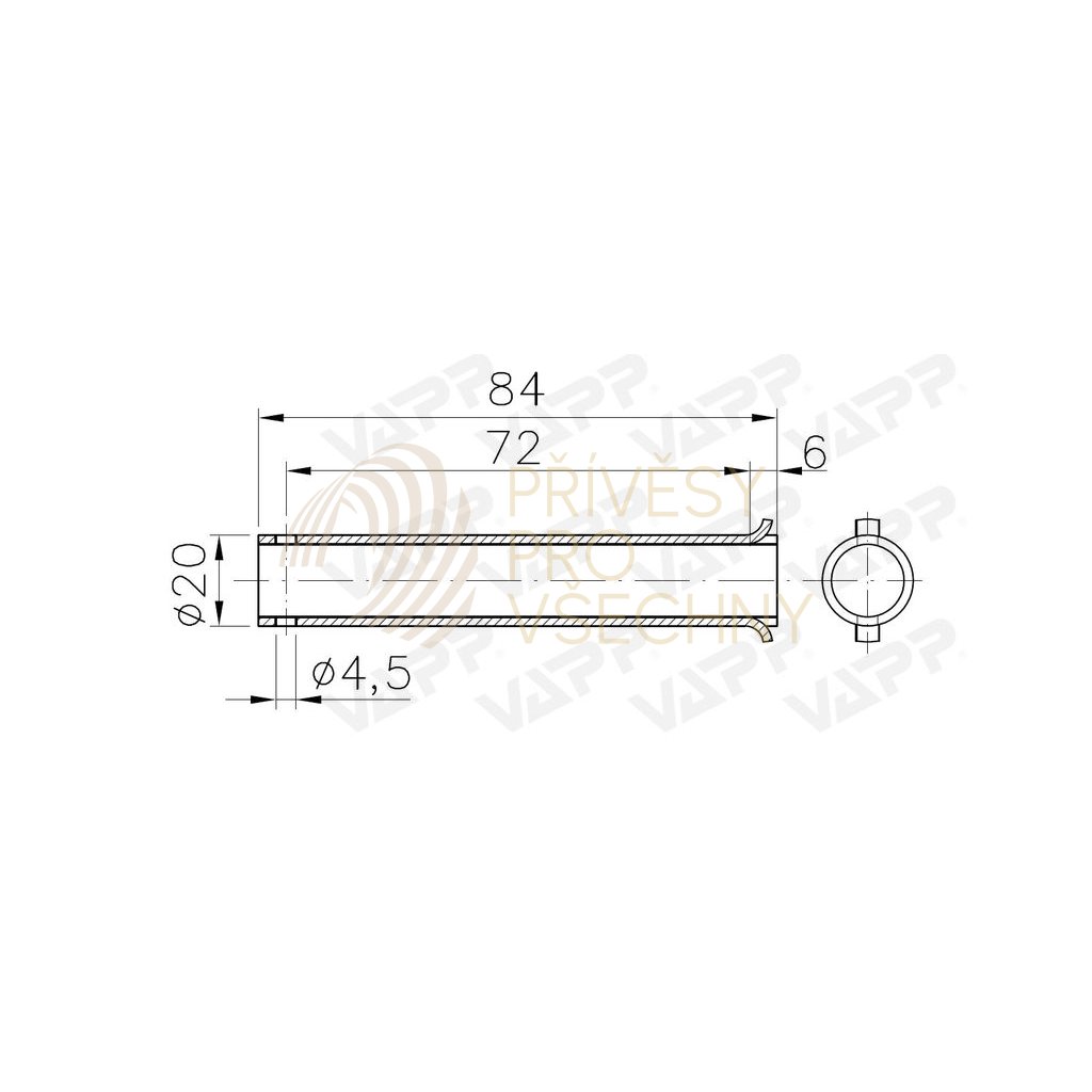Náhradní osička (čep) pr. 20 mm, délka 84 mm např. k opěrným kolečkům Winterhoff WW ST 48/200