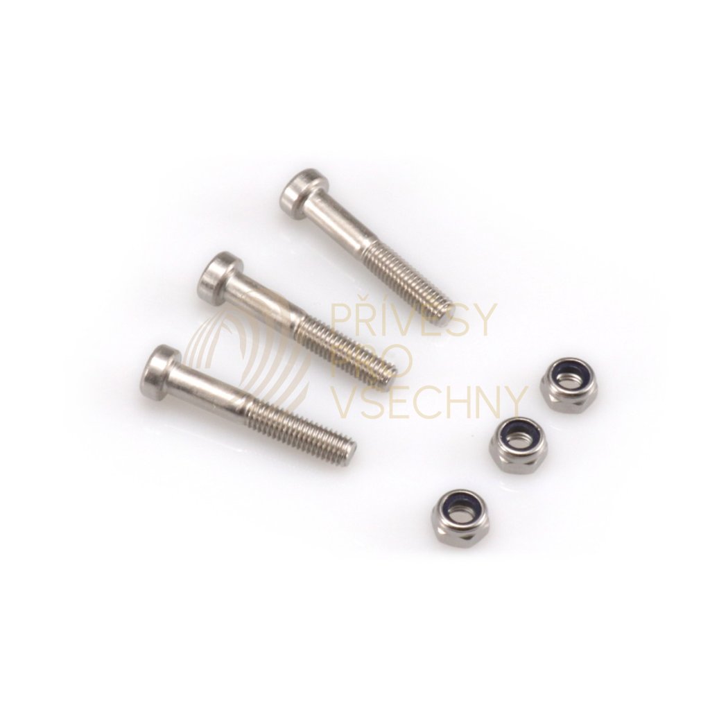 - Sada 3 ks nerezových šroubů s nízkou imbus hlavou a 3 ks samojistných nerezových matic pro uchycení autozásuvky tažného zařízení
