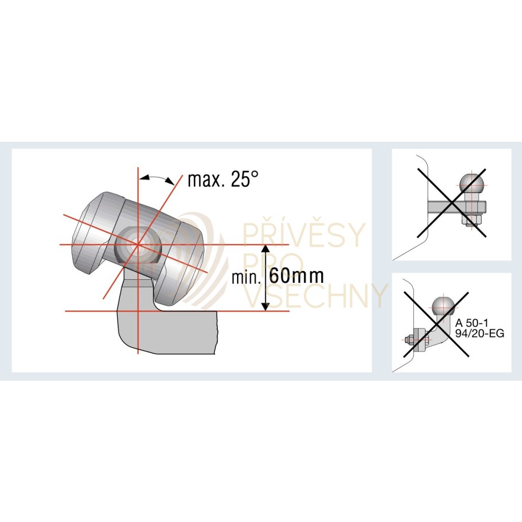 - Upozornění: Použití stabilizačních spojek není vhodné na koulích uchycených jedním svislým šroubením do konzoly závěsu. V okamžiku, kdy třecí segmenty pevně sevřou kouli a během jízdy dochází k mírnému protáčení do stran, mohlo by dojít k uvolnění svislého šroubení z konzoly.