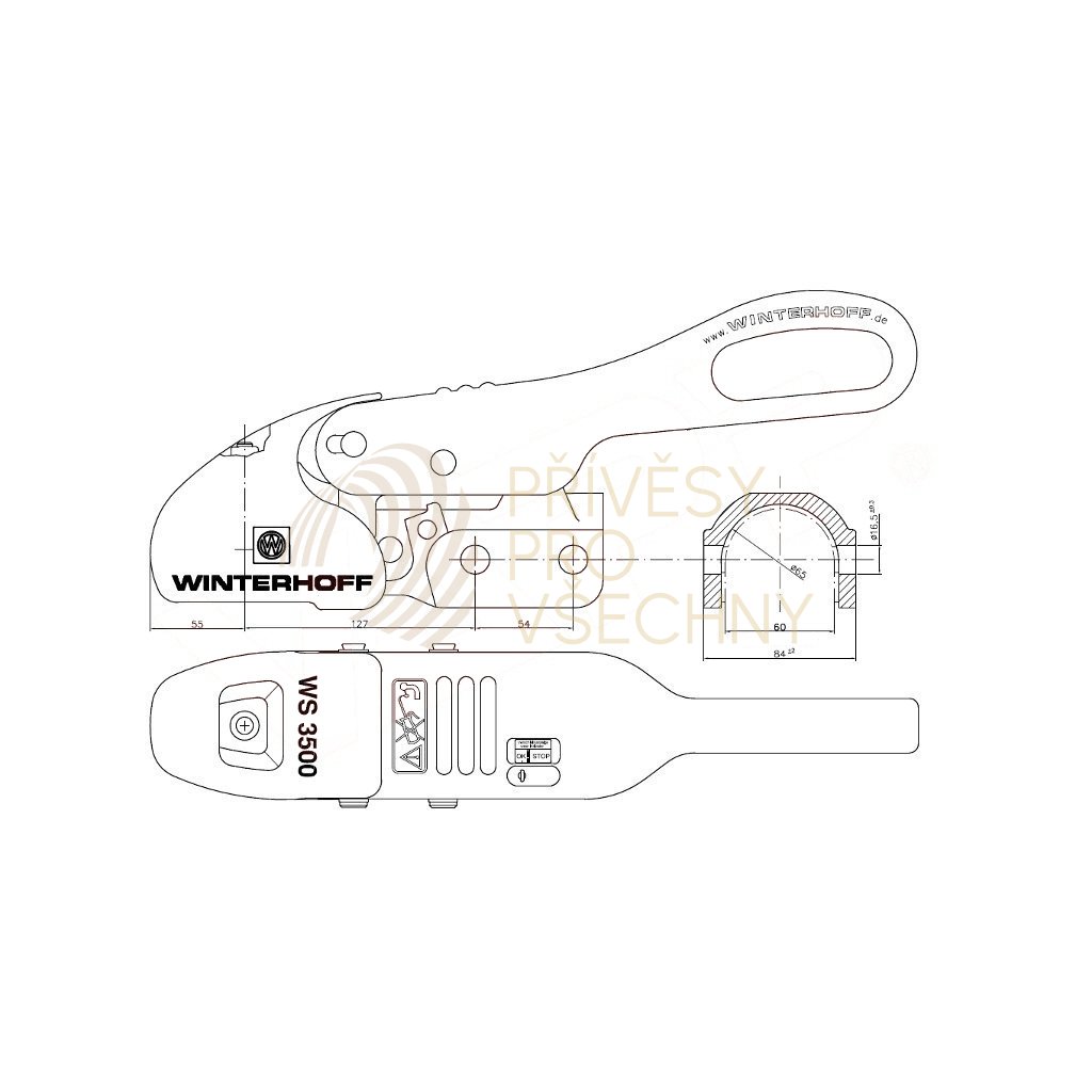 - Stabilizační kloub Winterhoff WS 3500 je vybaven indikátorem správného připojení a indikátorem míry opotřebení kulové spojky a třecích segmentů.