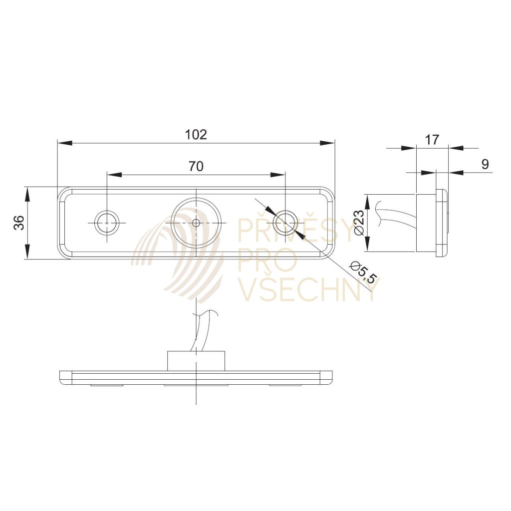 Boční obrysová LED svítilna s integrovanou odrazkou, automat. přepínací pro napětí 12V - 36V.