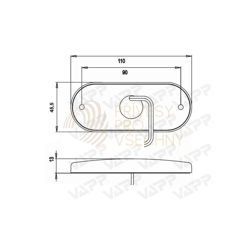 Boční obrysová LED svítilna s integrovanou odrazkou, automat. přepínací pro napětí 12V i 24V, včetně gumového držáku, určená pro montáž podvěsem.