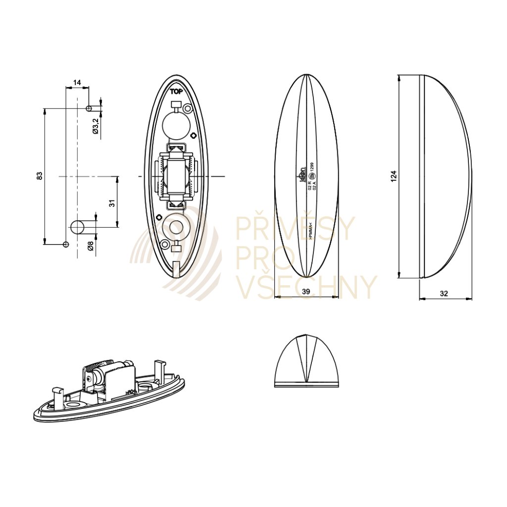 Osazení žárovkami: 12V- 1x C5W; 24V- 1xC5W (žárovky nejsou součástí dodávky)