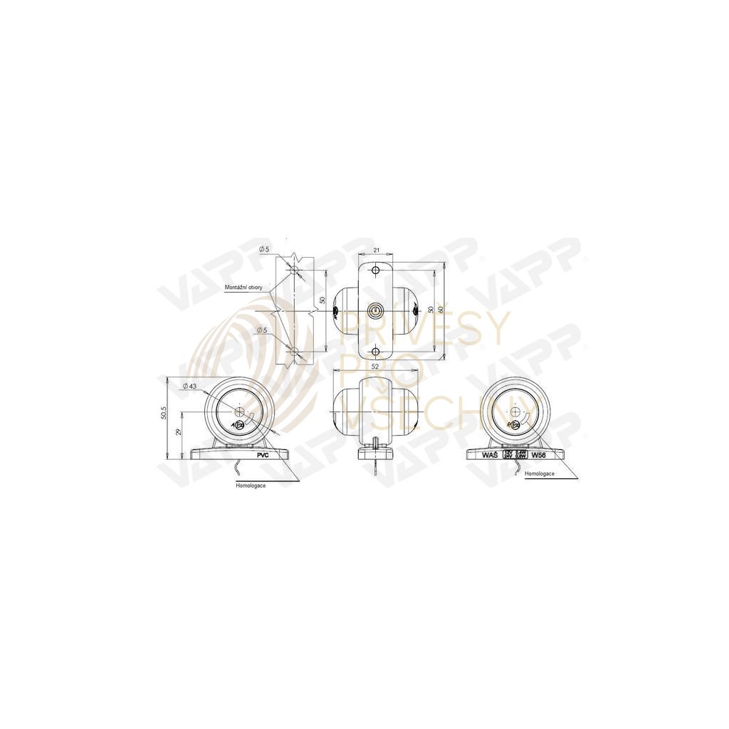 Svítilna doplňková obrysová LED WAS 275 malá, 12-24V, P/L 50 mm