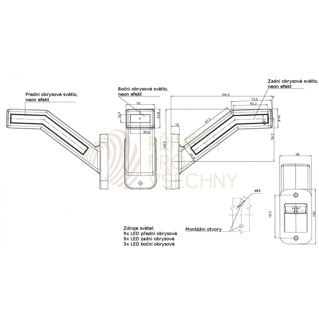 Svítilna doplňková obrysová LED WAS W168.1/1165, 12-24V, pravá, neon ef.