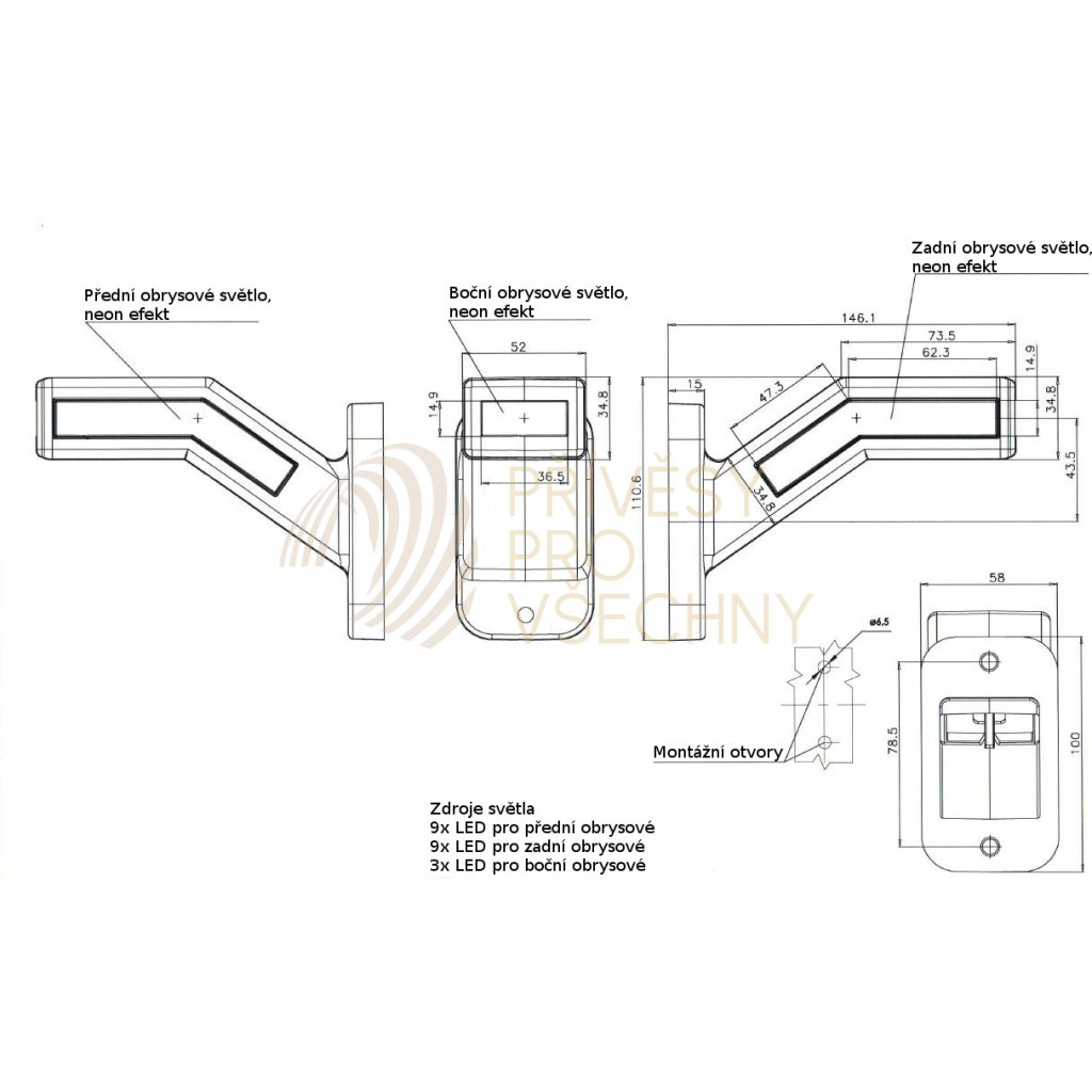 Svítilna doplňková obrysová LED WAS W168.2/1167, 12-24V, pravá, neon ef.