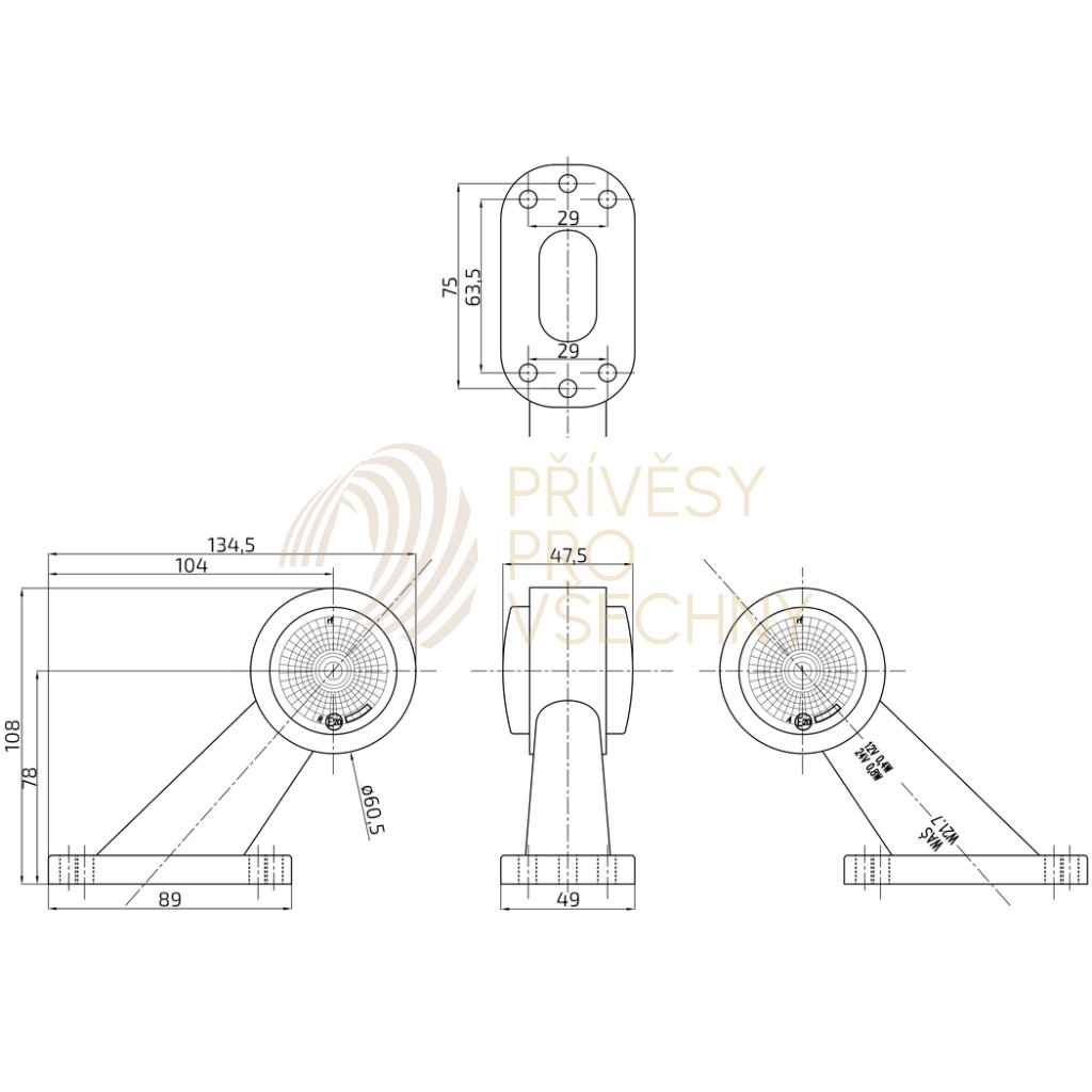 Svítilna je osazena červeným a bílým modulem s LED diodami. Z přední strany svítí bíle, ze zadní červeně a LED moduly si díky zabarvení použitého materiálu zachovají bílou a červenou barvu i po zhasnutí světel. Vysoká životnost LED diod a výborná odolnost proti otřesům odstraňují problémy s praskáním žárovek klasických žárovkových obrysových svítilen. Široký napěťový rozsah svítilny pak umožňuje její použití pro napětí 12V i 24V bez nutnosti jakýchkoliv úprav a změn. Toho lze s výhodou využít např. na přívěsech, které jsou provozovány za tažnými automobily s palubním napětím 12V a i za automobily s napětím 24V.