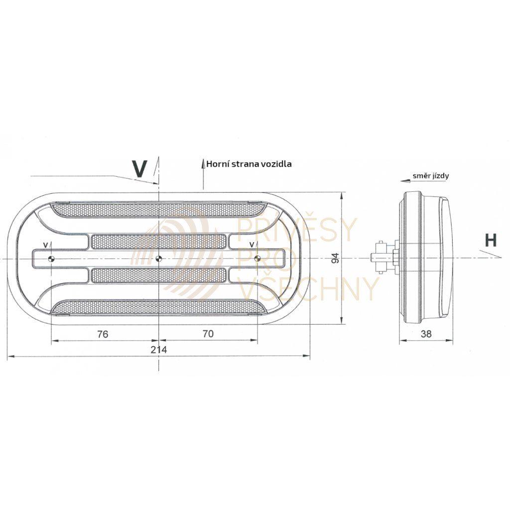- Svítilna je symetrická, ke změně z pravostranného provedení na levostranné stačí pouze pootočit o 180 stupňů.