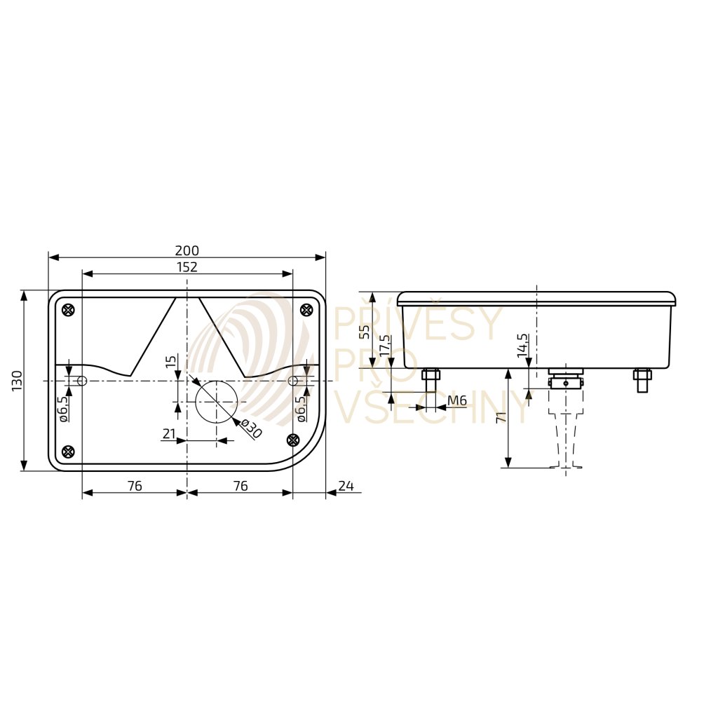 - Žárovkové provedení. Z výroby je svítilna osazena 12V žárovkami. V případě, že je potřeba přívěs provozovat se vstupním napětím 24 V, je nutné nejdříve vyměnit žárovky za 24V (24V žárovky nejsou součástí dodávky).