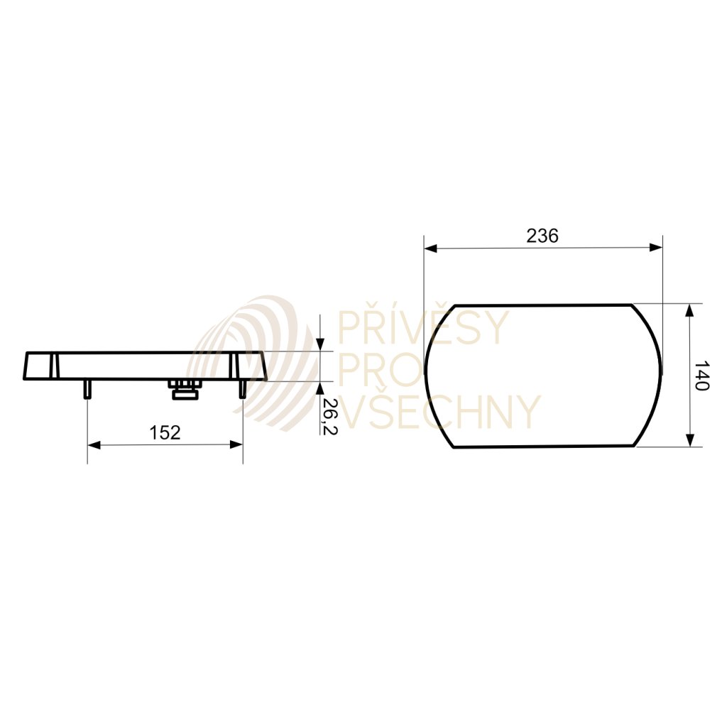 - Tato varianta je určená pro pravou stranu přívěsu (za řidiče). Provedení pro levou stranu přívěsu jak s osvětlením registrační značky, tak bez něj najdete v souvisejících/alternativních produktech.