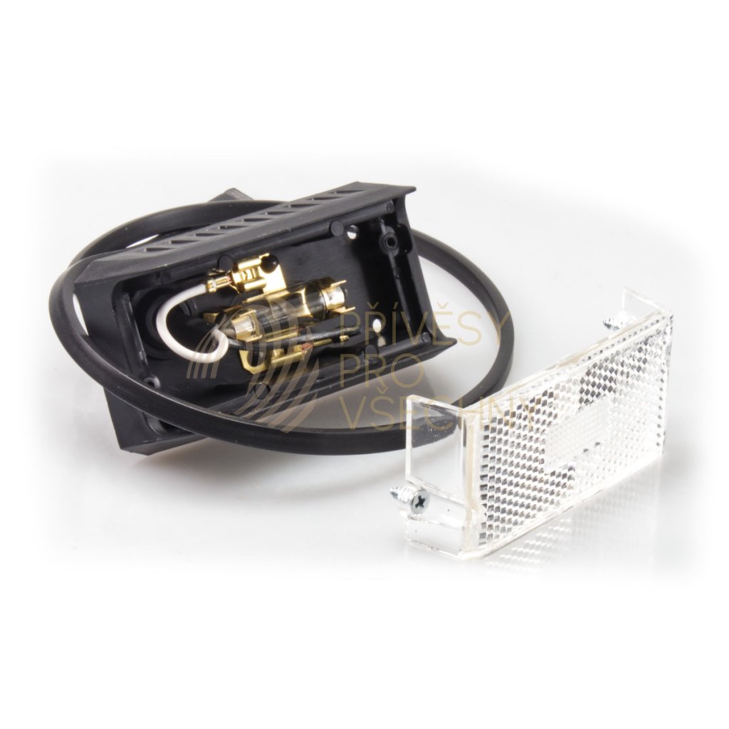 Přední obrysová svítilna s odrazkou v žárovkovém provedení. Černé plastové tělo svítilny lze po odšroubování sejmout a pomocí dvou samořezných šroubků (do předvrtaných otvorů) připevnit na přívěs. Poté se svítilna opět zkompletuje.