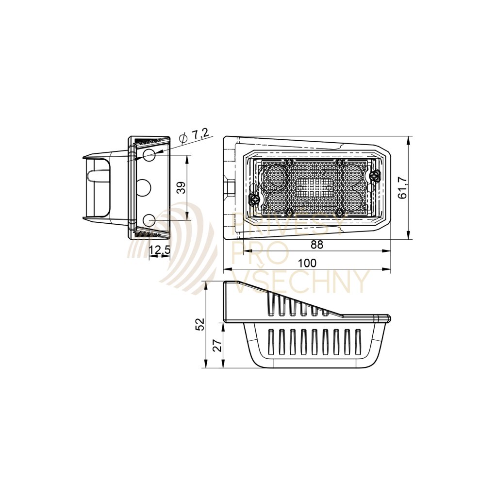 Svítilna přední obrysová Dobplast DPT15, s odrazkou, na držáku, kabel QS75