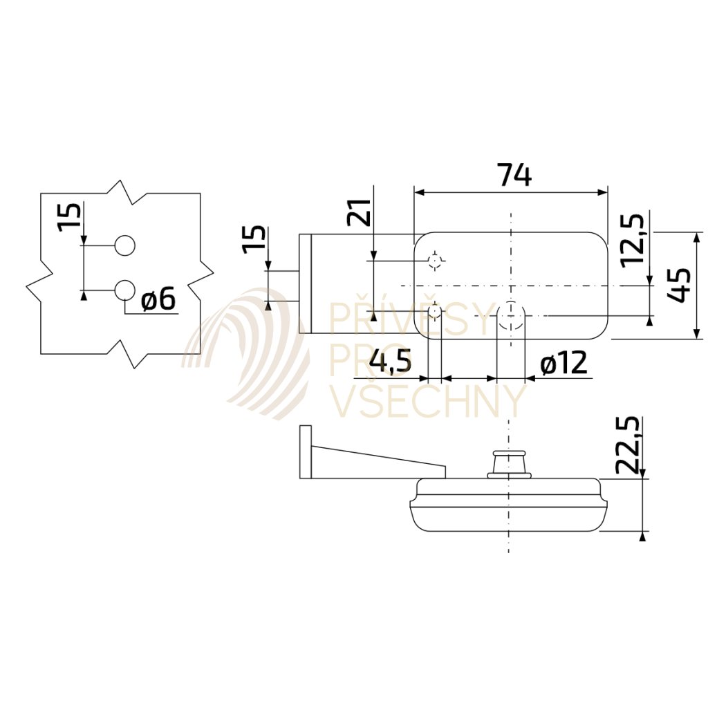 - Přední obrysová svítilna Jokon PLR 130 s integrovanou odrazkou pro přívěsy VAPP PV 0.7, VAPP UNI, VAPP PROFI a VAPP LPV.