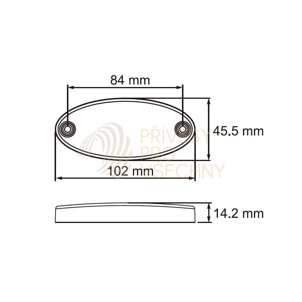 Přední obrysová LED svítilna s integrovanou odrazkou, automat. přepínací pro napětí 12V i 24V. Osazovaná na přívěsech VAPP a Agados.