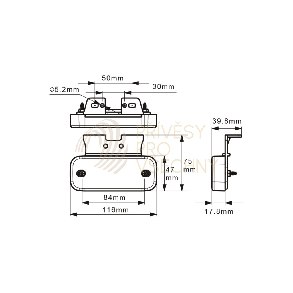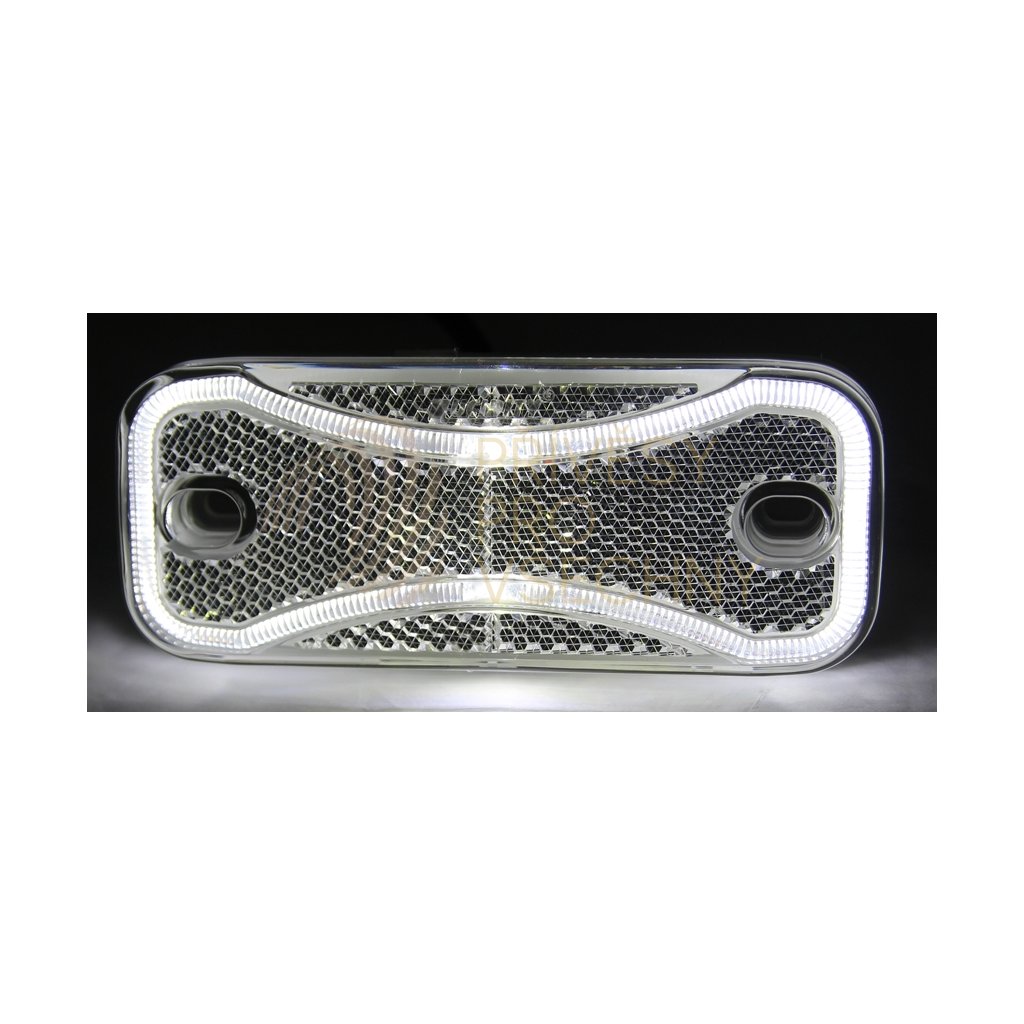 Přední obrysová LED svítilna na držáku s integrovanou odrazkou, automat. přepínací pro napětí 12V i 24V.