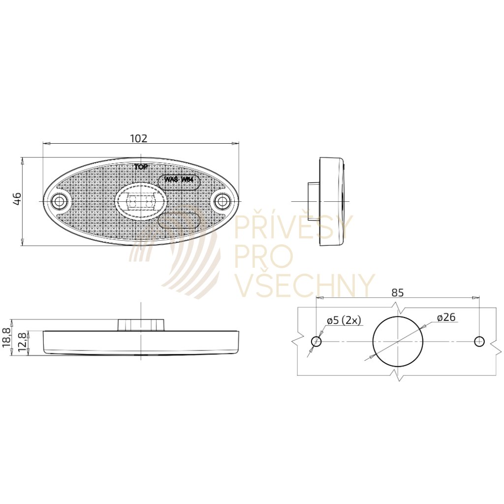 Svítilna přední obrysová LED WAS W64, 12-24V, s odrazkou, QS150