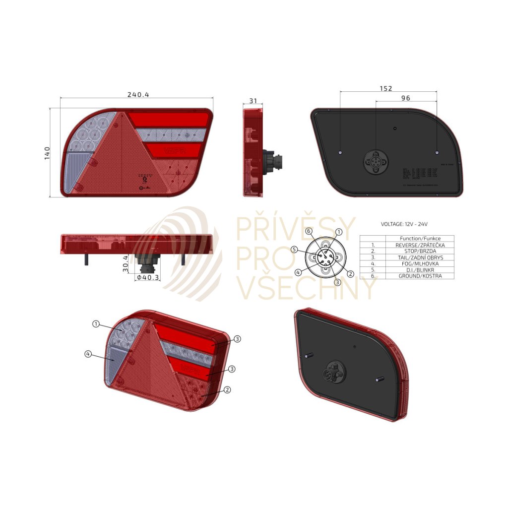 - Vysoce odolná 6-funkční LED zadní sdružená svítilna se skvělou odolností proti vodě ve standardu IP67