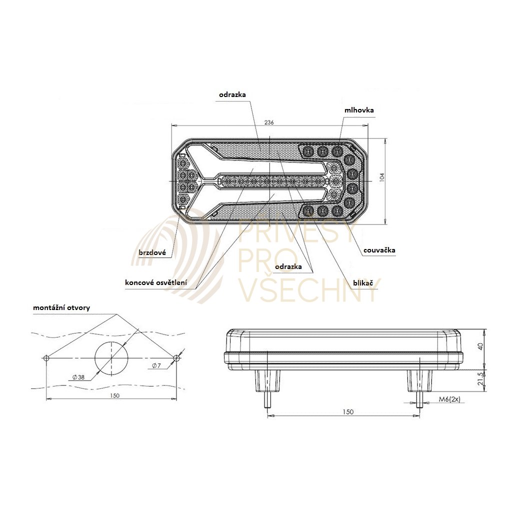 - Při použití na přívěsu je nutné přívěs osadit ještě odrazkou trojúhelníkového tvaru.