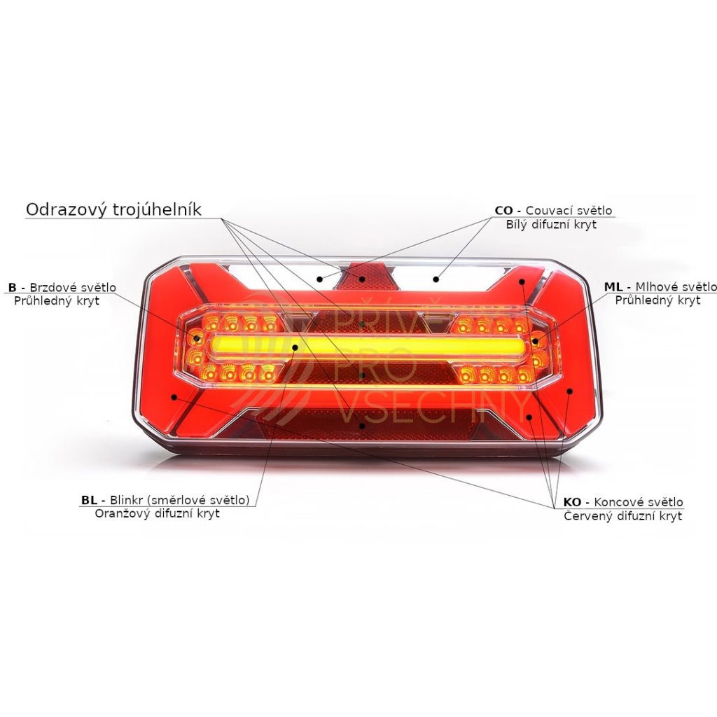 Svítilna WAS W184DD sdružená LED 12-24V, P, BL/BR/KO/ ML/CO, baj7, dyn. blinkr IP66/68