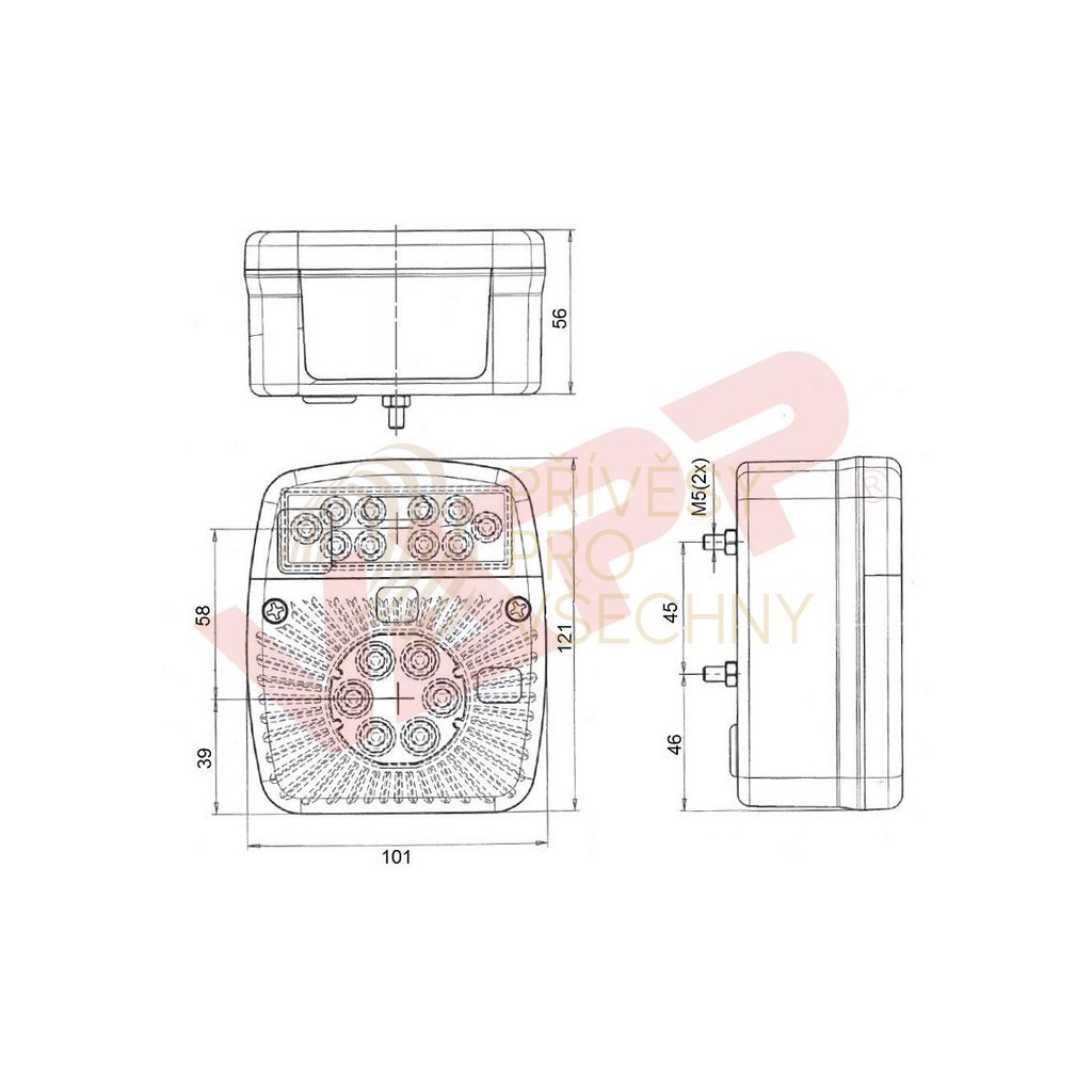 Jednoduchá zadní LED svítilna s obrysovým, brzdovým a směrovým světlem.