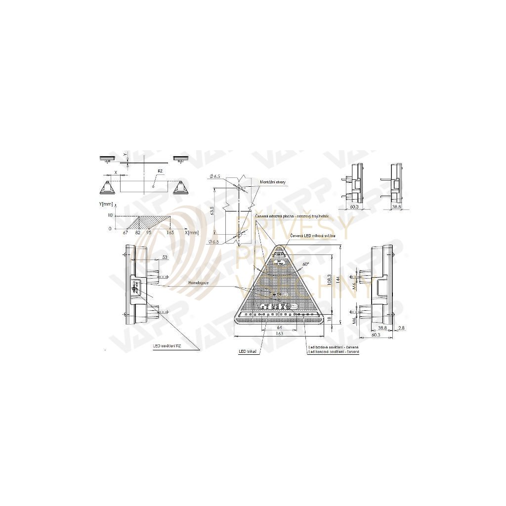 Nejmenší homologovaná zadní sdružená svítilna na přívěsy s integrovaným odrazovým trojúhelníkem, blinkrem, mlhovkou, koncovým, brzdovým světlem a osvětlením SPZ v LED provedení