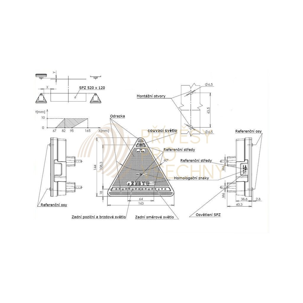 Nejmenší homologovaná zadní sdružená svítilna na přívěsy s integrovaným odrazovým trojúhelníkem, blinkrem, couvačkou, koncovým, brzdovým světlem a osvětlením SPZ v LED provedení