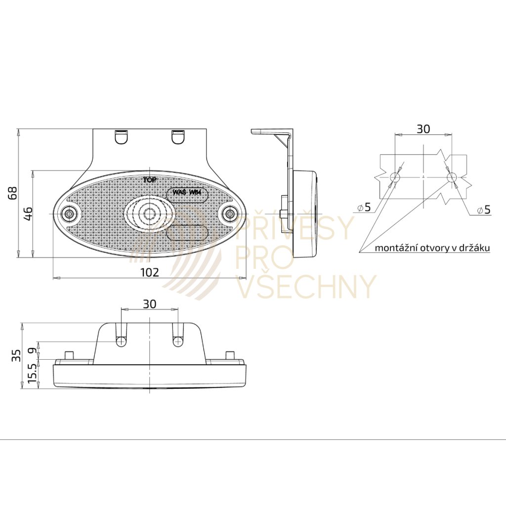 Svítilna zadní obrysová LED WAS W64, 12-24V, eliptická na držáku