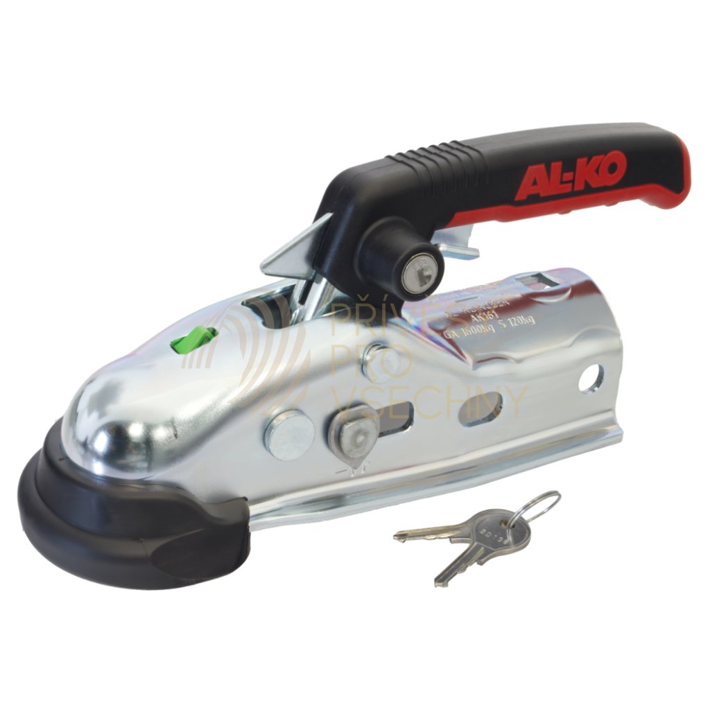 Tažná kulová spojka (přípojný kloub) AL-KO AK 161 nahrazuje starší typ AK 160. Je určená pro montáž na nájezdové brzdy do 1600 kg s průměrem tažné trubky 50 mm a vrtáním pro horizontálně umístěné upevňovací šrouby. Díky přiloženým distančním vložkám je možné ji namontovat rovněž na tažnou trubku o průměru 45 nebo 35 mm Spojka se běžně upevňuje dvěma horizontálně umístěnými šrouby (nejsou součástí dodávky, na přání dodáváme samostatně). V zadní části tažné spojky je také otvor pro vertikálně umístěný šroub, který umožňuje použít tažnou spojku i na nájezdových brzdách s upevňovacími šrouby umístěnými "do kříže".