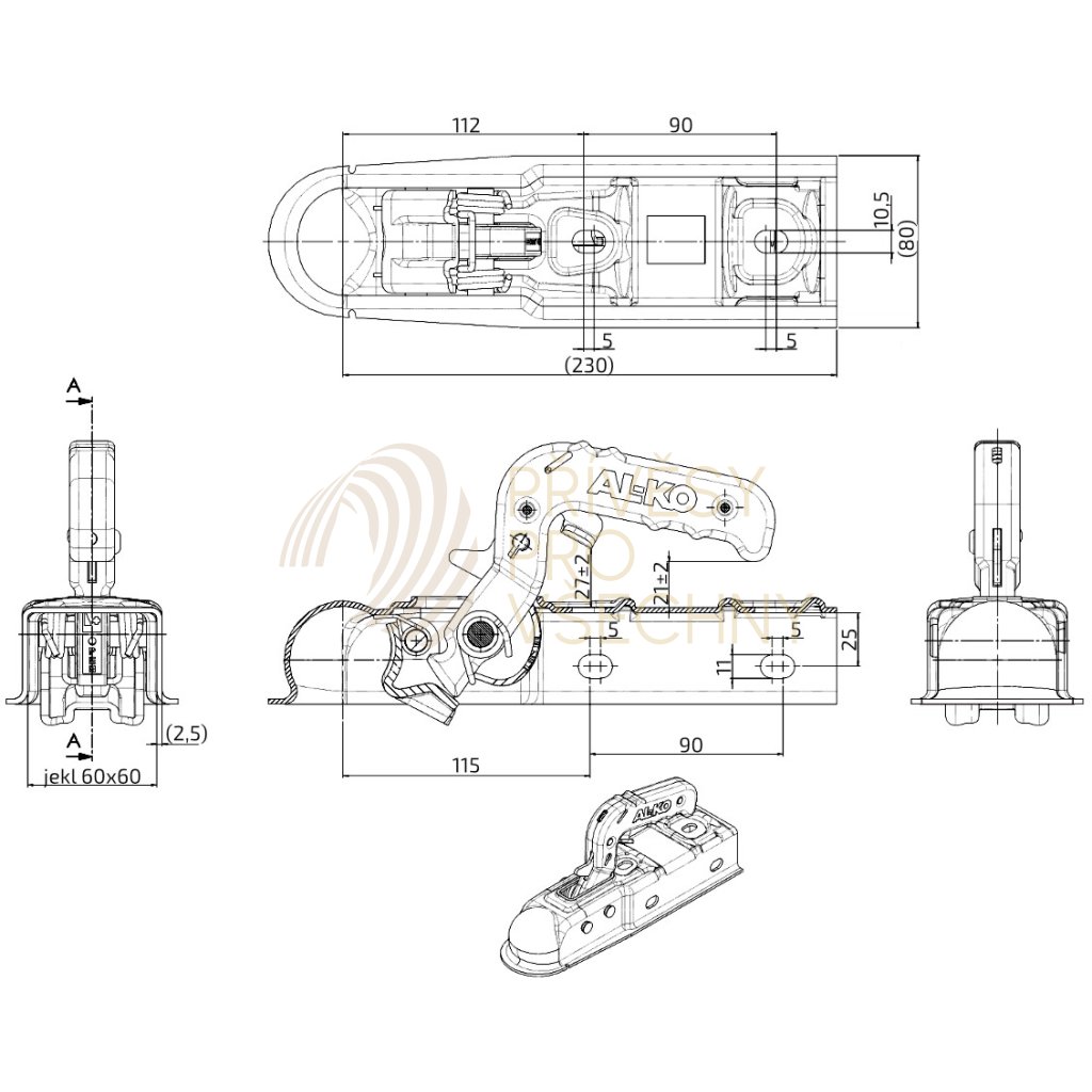 Tažná spojka AL-KO AK 7-E, 750 kg, 60x60 mm, H10V10