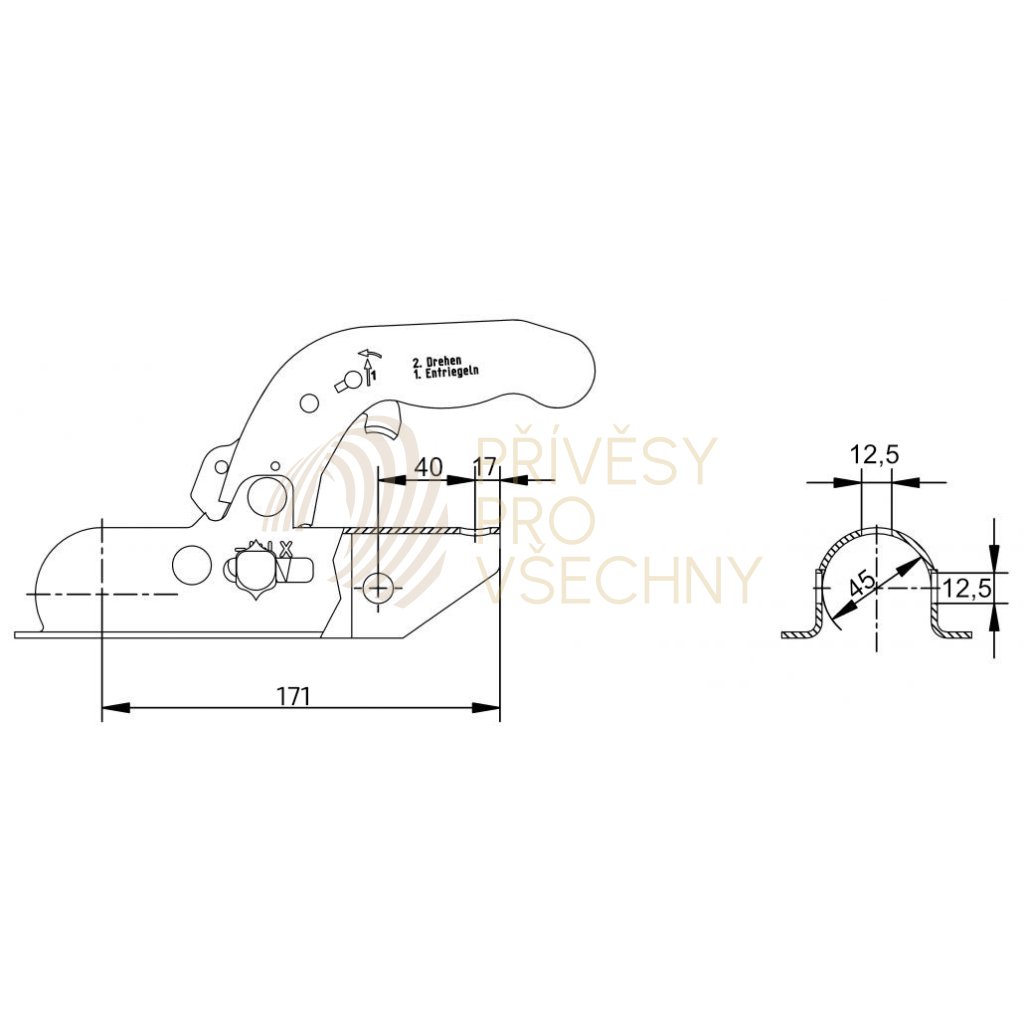 Tažná spojka KNOTT KK14-B, 1400 kg, 45 mm, H12V12