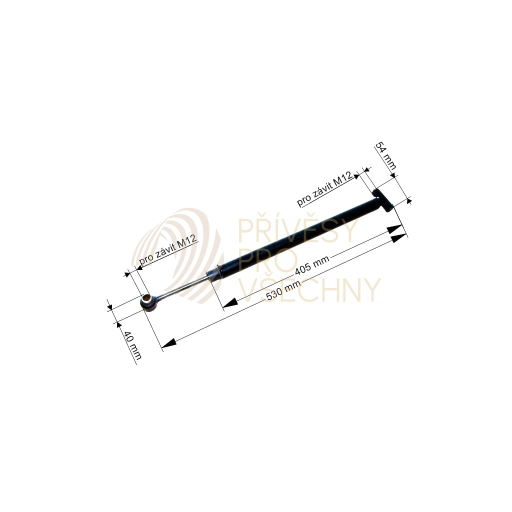 Celková délka tlumiče je 53 cm (celková délka se může u jednotlivých kusů nepatrně lišit). Jedna strana je ukončena okem se silentblokem pro šroub M12, druhá strana je zakončena kolmou 54 mm dlouhou trubkou pro prostrčení šroubu M12.