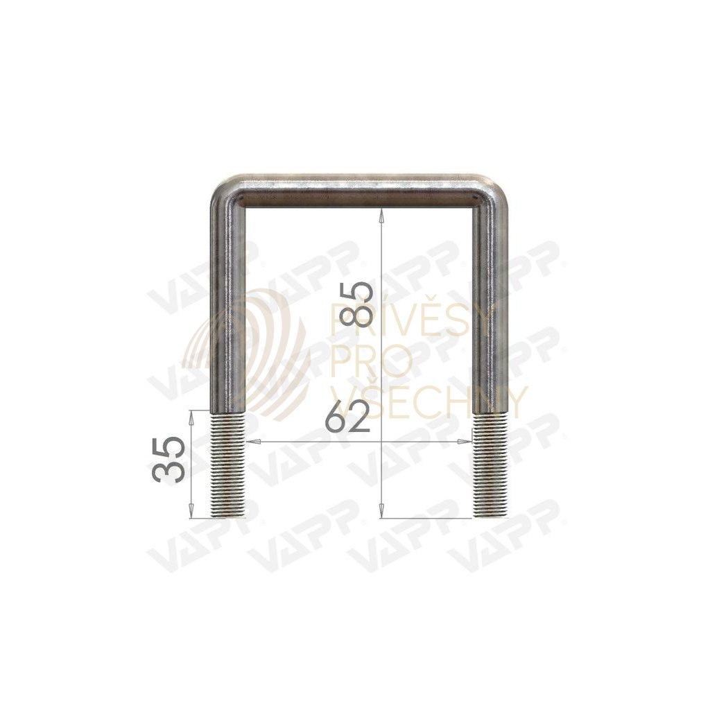 Ocelový galvanicky pozinkovaný třmen se závity M10. Závity jsou na třmenu tzv. naválcované, t.j. délka závitu je pevně daná a závit nelze proříznout dál. Průměr kulatiny třmenu je 11 mm.