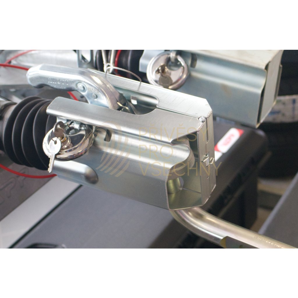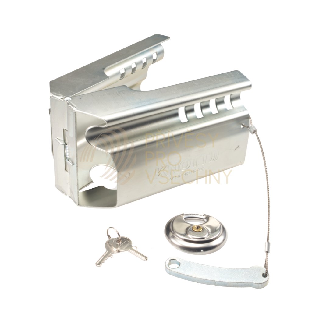 - Univerzální zámek KNOTT pro zabezpečení tažné kulové spojky přívěsu na připojeném i na odpojeném přívěsu