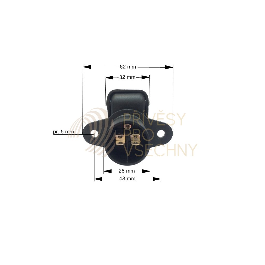 - Zásuvka je připravena pro napojení na vodiče pomocí plochých násuvných autokonektorů tzv. Faston konektorů.